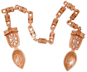 Solje is a type of Norwegian jewelry customarily worn with clothing called “bunad,” the national costuming of Norway. The word “solje” translates to “shiny” or “sunny.” These jewelry pieces usually have dangling spoon-shaped elements that reflect light and make them sparkle.