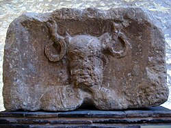 "Neferure was Hatshepsut's daughter. Senenmut was a confidant and educator of Neferure in addition to being an architect and government official. He was allowed to erect his own statues in Thebes (reflecting his high status). The girl is wrapped by a large cloak and only her head appears. The cartouches of Hatshepsut are carved on the surface of the statue. Granite. From Western Thebes, Egypt. New Kingdom, 18th Dynasty, 1473-1458 BCE. It is on display at the Neues Museum, Berlin, Germany." Altar? Female aspect 'in front'?