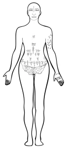 A composite image of Meroitic Period tattoos, from Aksha in Sudan.