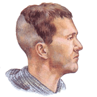 The painting was discovered in an out-house building that was once the priest house of the Combe Templariorum (1185-1307) – a Templar Preceptory. Originally vividly coloured in green and vermillion pigments with gold stars around the bearded head, it was faded out to its present sepia appearance by an attempt at amateur restoration. Carbon dated to between 1280 and 1310, it is considered to represent the head of Christ. The lack of any redeeming features or halo means it could represent Jesus before his baptism, or John the Baptist. The lobata extend into what appear to be fleur de lys (French: lily flower). This classical symbol, with one of its roots in the Assyrian Tree of Life, grew into a symbol of French royalty (Merovingian origin). Until the end of the 12th Century it was associated with Christ, until slowly incorporated into the Cult of Mary, as the Song of Solomon relates (2:2): sicut lilium inter spinas (Like a lily amongst thorns). The Merovingian Charlemagne (Charles the Great, 748-814) was said to have brought together esoteric and exoteric Christianity. At least the image of this converging grail stream runs through the story of Floris and Blanchefleur (Old French: Floire et Blancheflor, c.1160) – the Rose and the Lily...